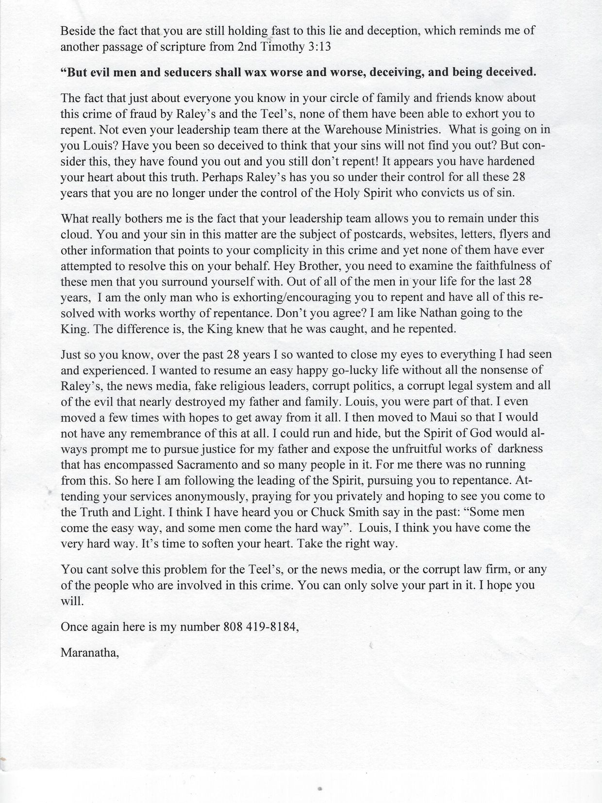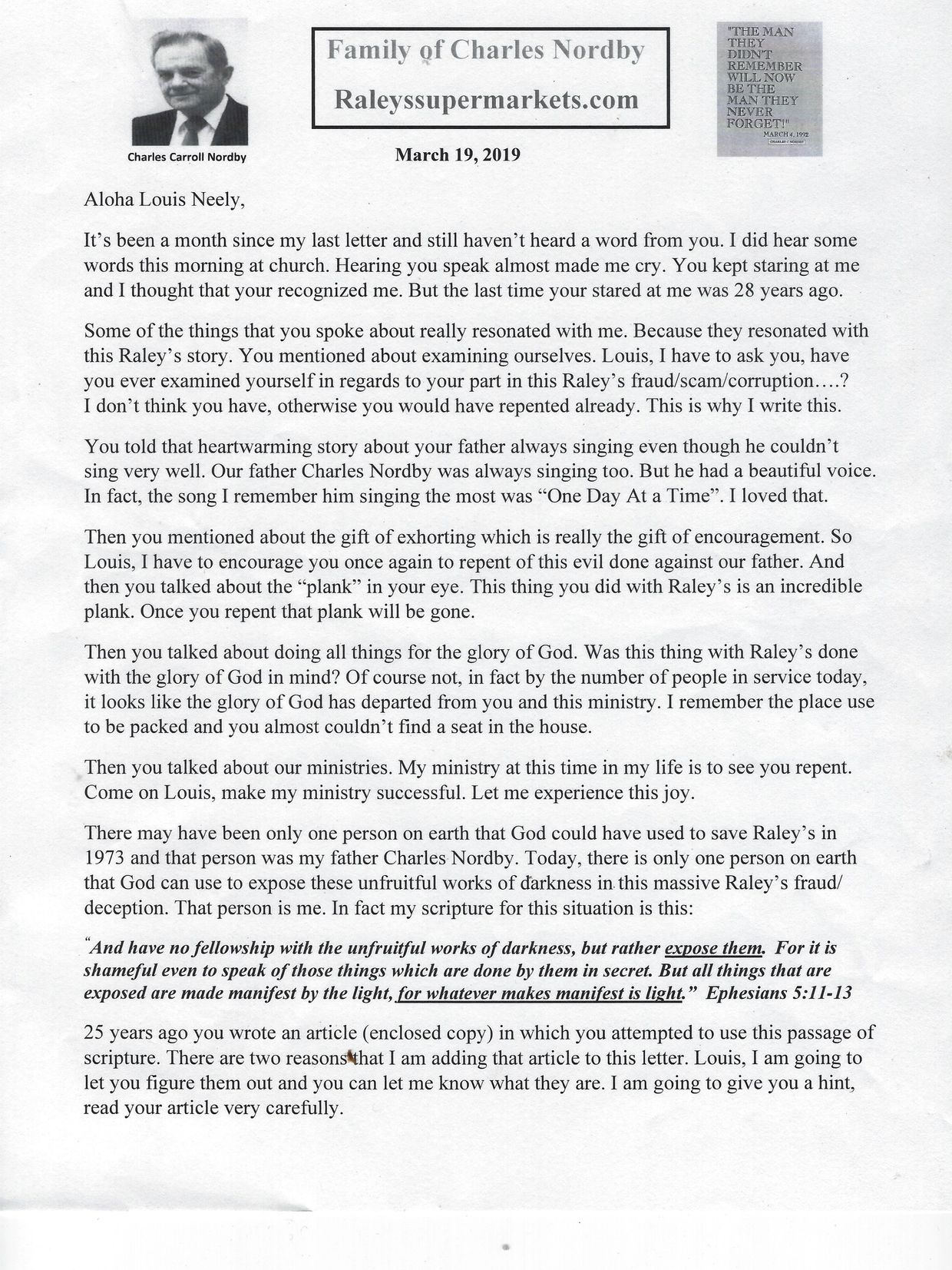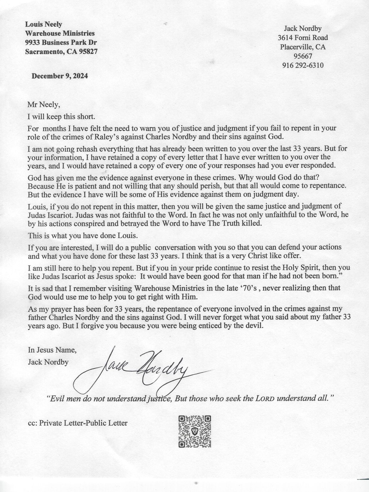 Raley's somehow got to Louis Neely. We just don't know if they bribed Louis Neely or what, but for 34 years Louis has remained silent. Look at some of the letters written to him in an attempt to find out why he did what he did.