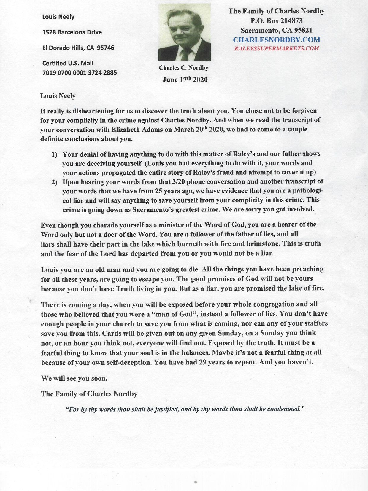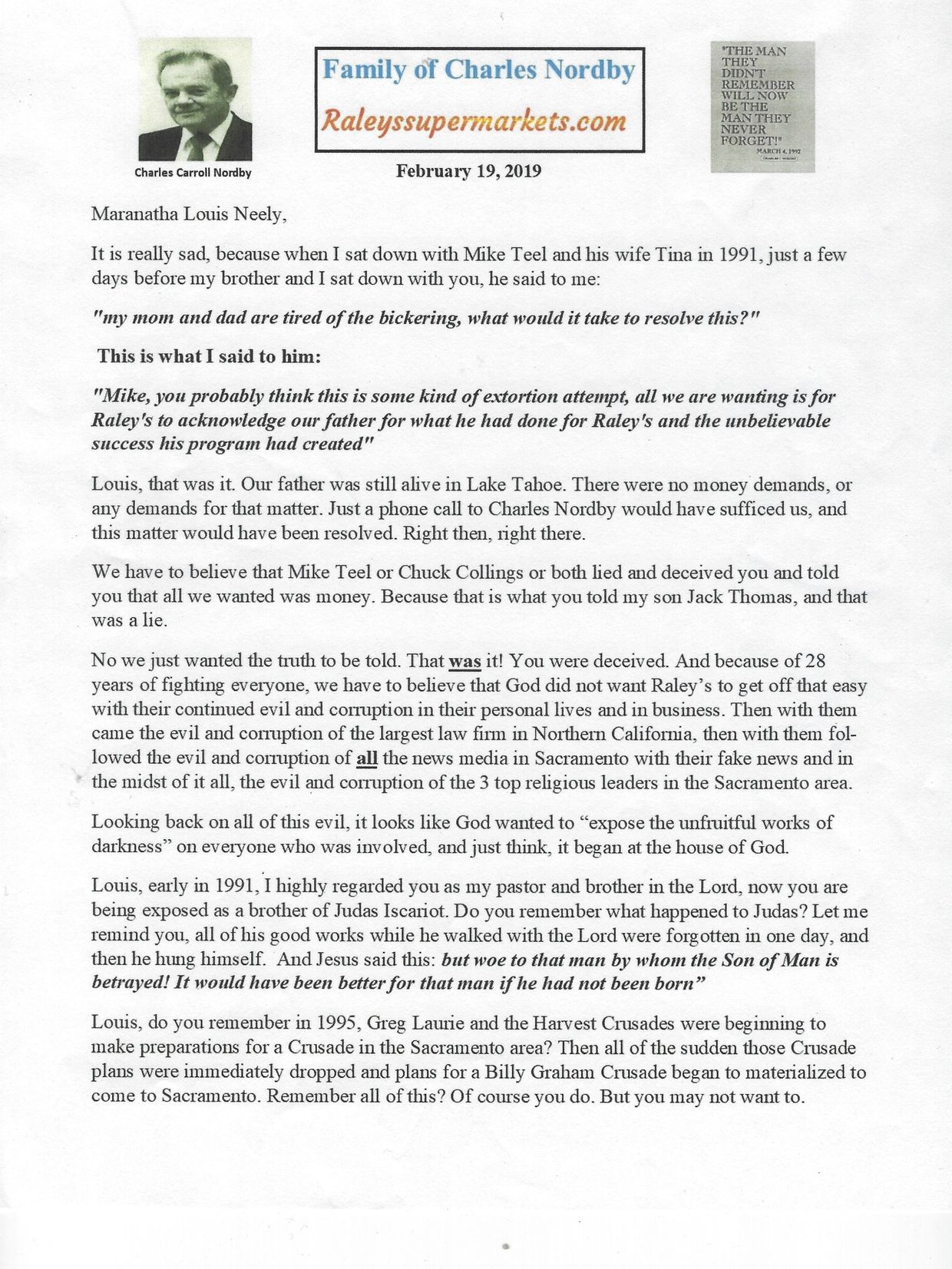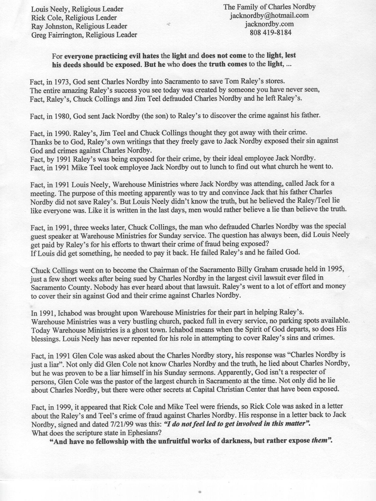 Since it was God who sent Charles Nordby to Sacramento to save the Raley's Supermarkets, it makes sense that God would also expose their crimes that has permeated throughout much of the higher Eschelon of Sacramento.