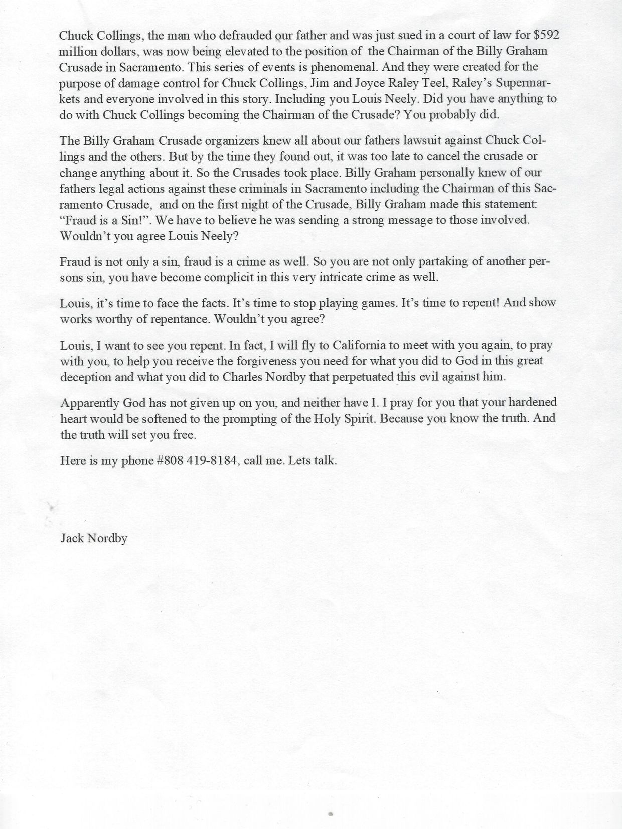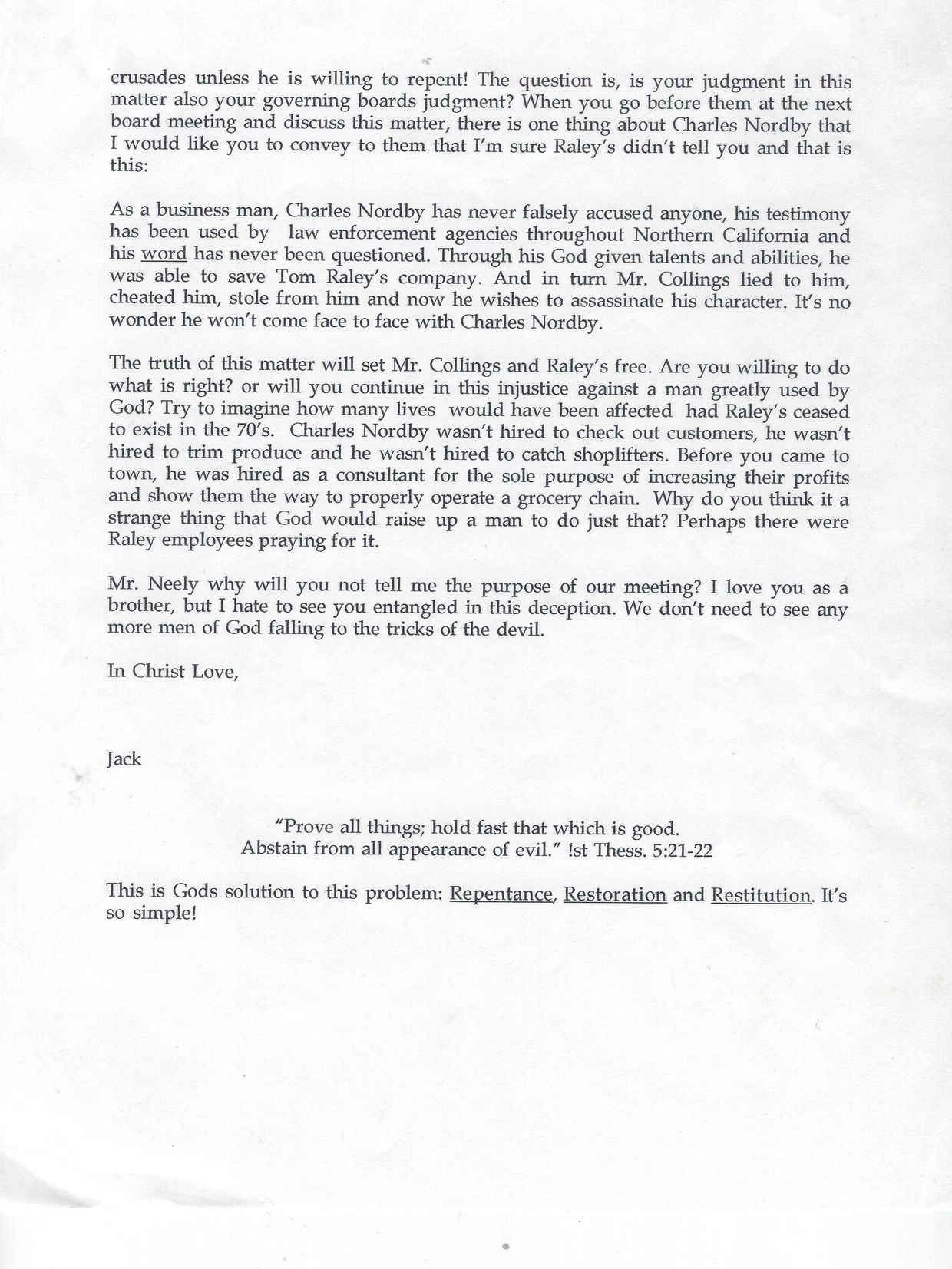 Remember, Jack Nordby was the Raley's employee who first discovered Raley's crime against his father, and Raley's was trying to find someone who could silence Jack from talking about their crime.