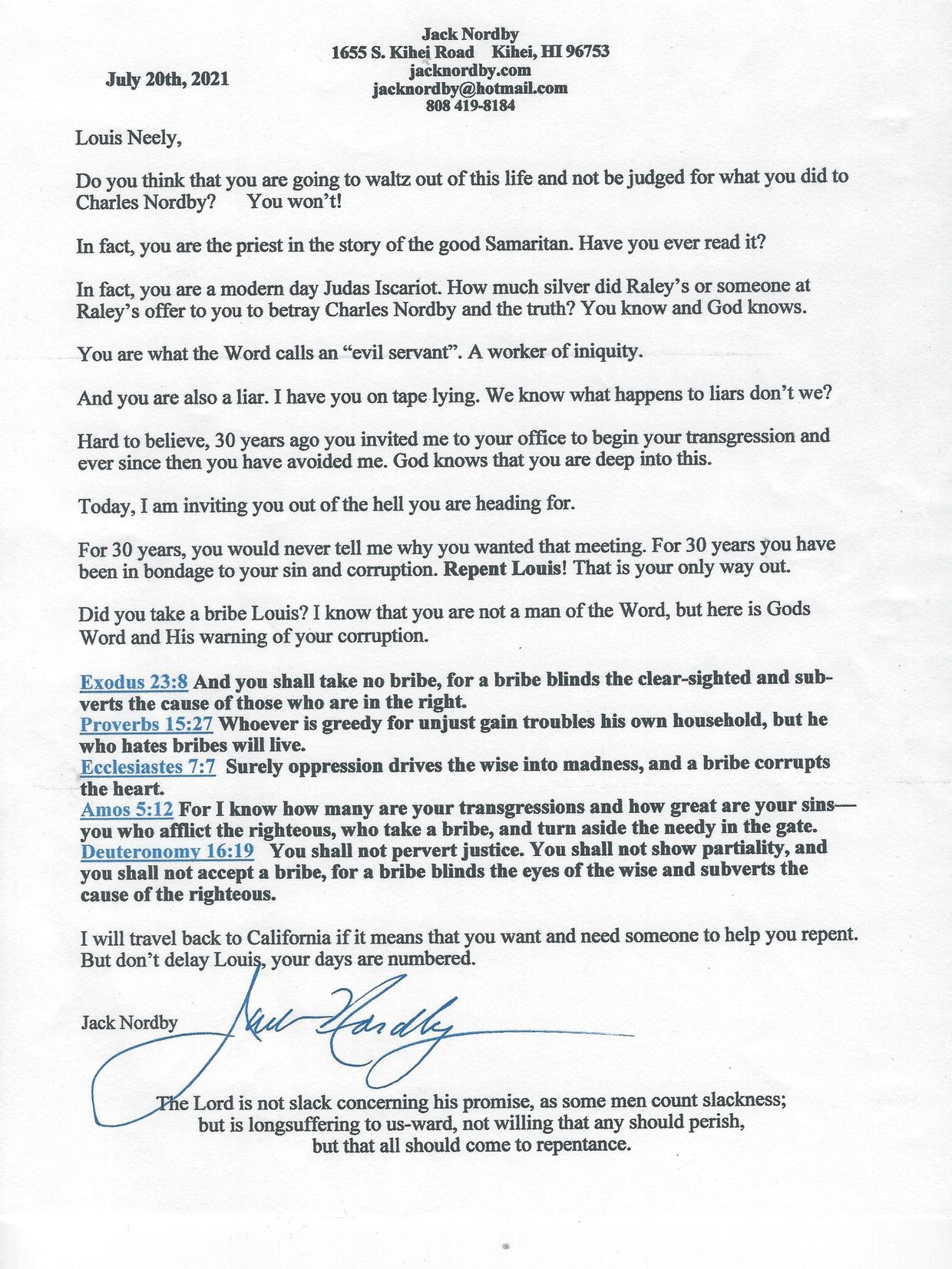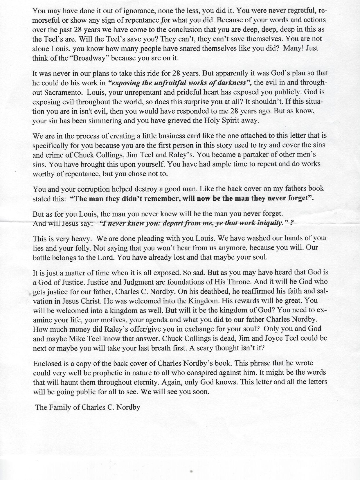 Poor Louis Neely will die harboring this crime and sin that he committed against Charles Nordby.