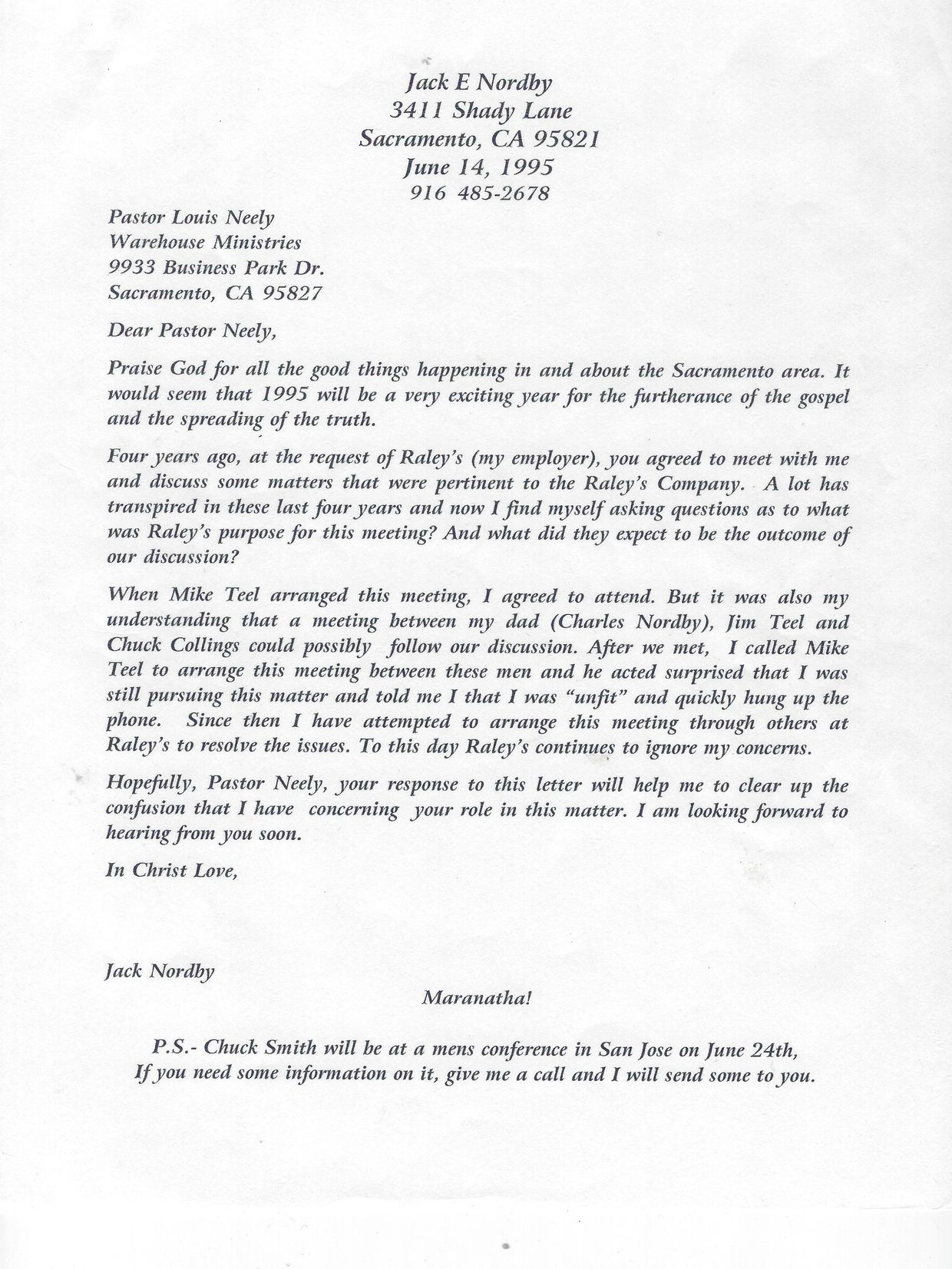 In 1991, when Raley's crime first surfaced in Sacramento, someone at Raley's contacted Pastor Louis Neely of Warehouse Ministries where